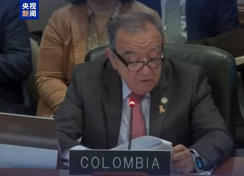 △哥倫比亞常駐美洲國家組織代表巴爾加斯發(fā)言現(xiàn)場