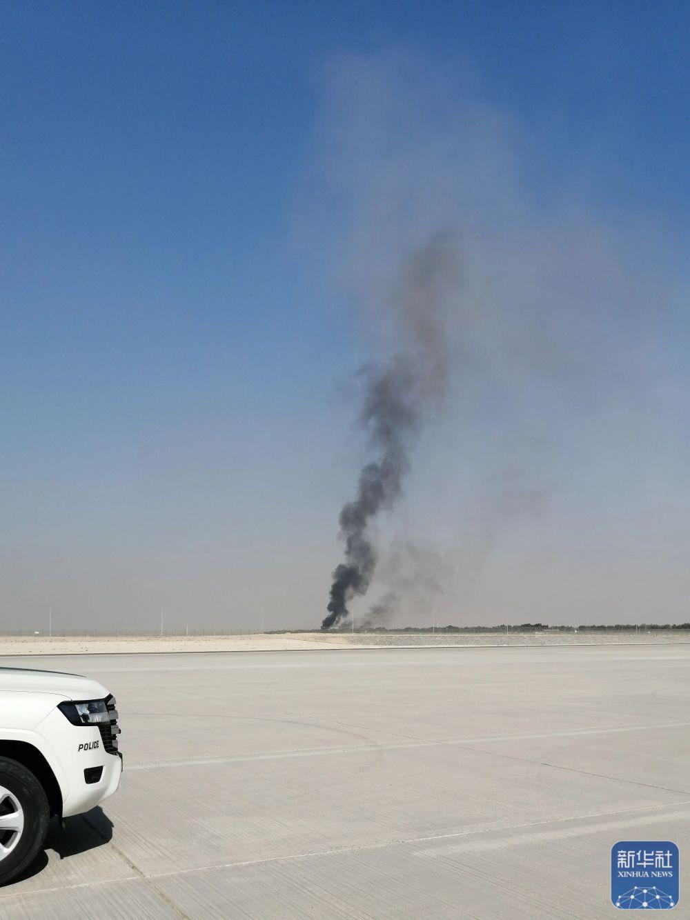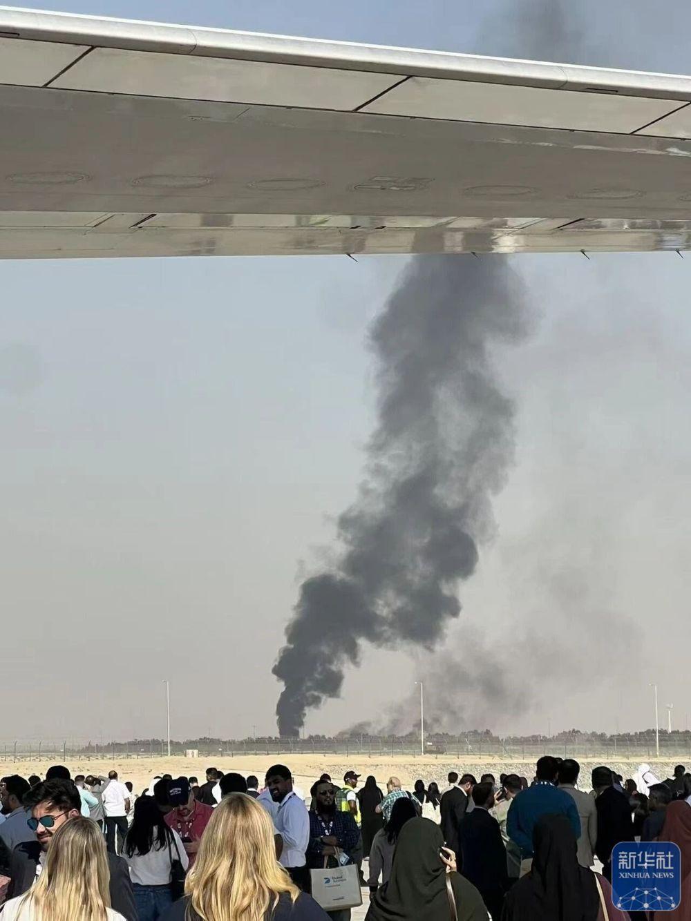 11月21日,在阿聯(lián)酋迪拜,飛機(jī)墜毀現(xiàn)場冒出滾滾濃煙。