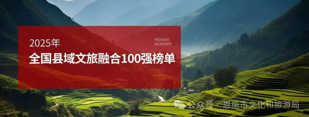 11月21日,全國縣域農(nóng)文旅發(fā)展大會在文旅行業(yè)年度盛會“2025邁點文旅節(jié)暨最佳東方人才周”上隆重舉行。“全國縣域文旅融合100強”榜單正式揭曉,恩施市上榜全國縣域文旅融合綜合競爭力百強名單,位列全國第17名,向世界遞出了一張亮眼的文旅名片。