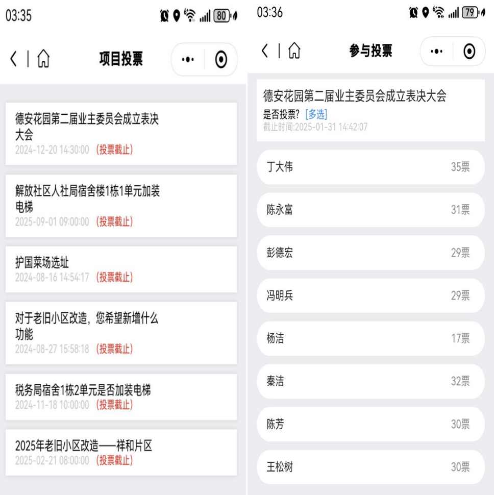 解放社區(qū)“未來(lái)社區(qū)”平臺(tái)群眾端項(xiàng)目投票情況