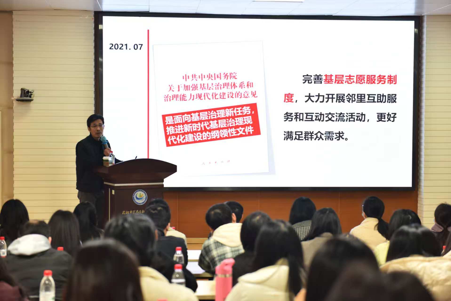 理論授課環(huán)節(jié),深圳大學(xué)政府管理學(xué)院袁方成教授以《志愿服務(wù)助力基層治理現(xiàn)代化》為題展開授課。他系統(tǒng)闡釋了新時代志愿服務(wù)體系的目標(biāo)任務(wù)與發(fā)展趨勢,深入解讀了志愿服務(wù)工作發(fā)展歷程、職能要求、創(chuàng)新案例,為學(xué)員們打開了最新的宏觀視角,提供了堅實的理論支撐。