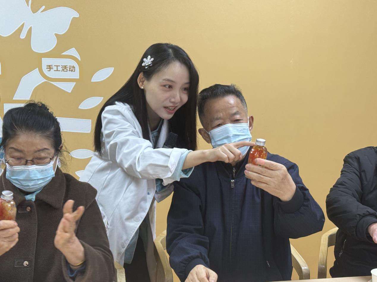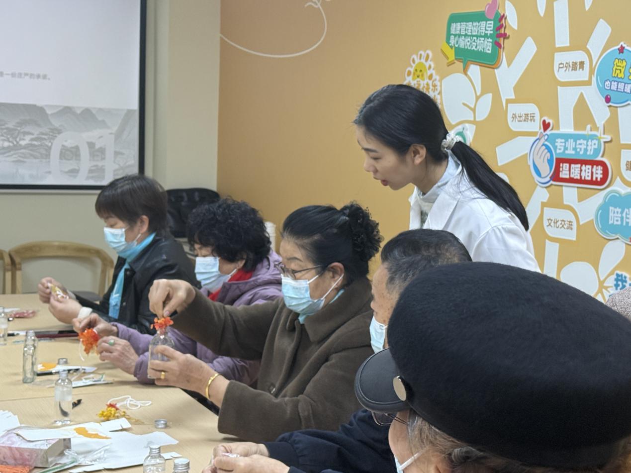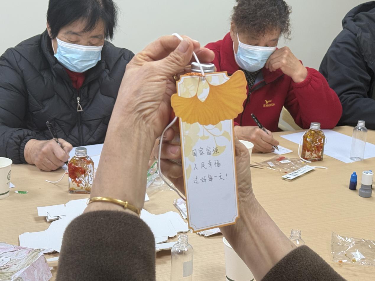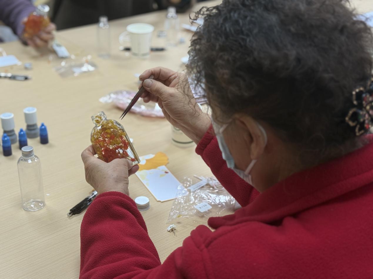 活動注重多維感官體驗與情感表達(dá)?!肮庵敢杯h(huán)節(jié)中,經(jīng)典詩句“如果冬天來了,春天還會遠(yuǎn)嗎?”的深情朗誦,與畫面中由暗漸明的曙光影像交織,直觀地喚醒心中的樂觀與期待。備受喜愛的“希望許愿瓶”制作,則提供了一個將抽象情感具象化的藝術(shù)創(chuàng)作過程。居民們在輕柔音樂中書寫微小而具體的愿望,與象征時間與美好的干花一同封存,不僅創(chuàng)造了獨特的紀(jì)念品,更完成了一次賦予期盼以形態(tài)和儀式感的積極心理行動。