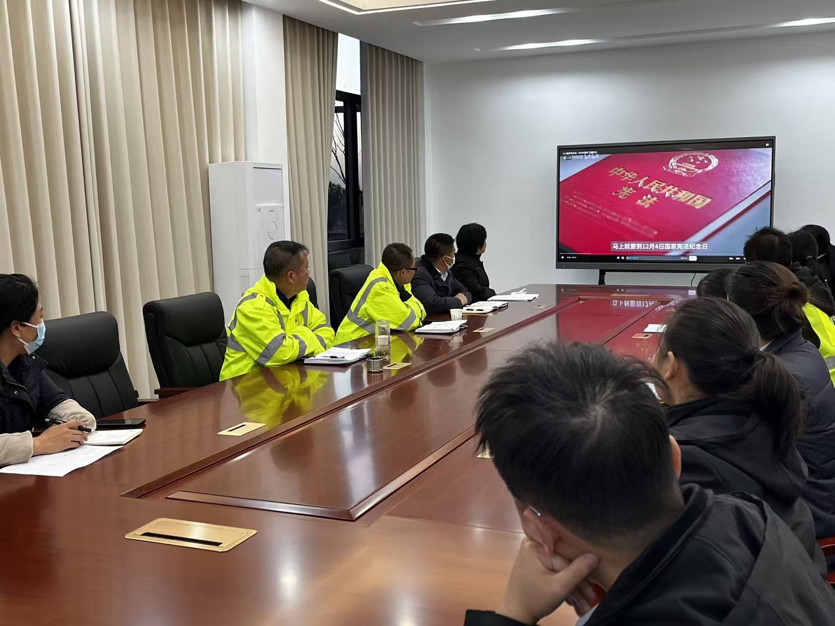 在收費站會議室,屏幕上《中華人民共和國憲法》的封面莊重醒目,職工們集中觀看憲法宣傳教育片,系統(tǒng)學(xué)習(xí)憲法核心要義、基本原則以及與崗位工作密切相關(guān)的法治規(guī)范,“依憲履職、依法服務(wù)”的意識逐漸深化。大家紛紛表示,要將憲法精神融入日常收費服務(wù)的每一個環(huán)節(jié),讓法治思維成為崗?fù)すぷ鞯摹盎緶蕜t”。
