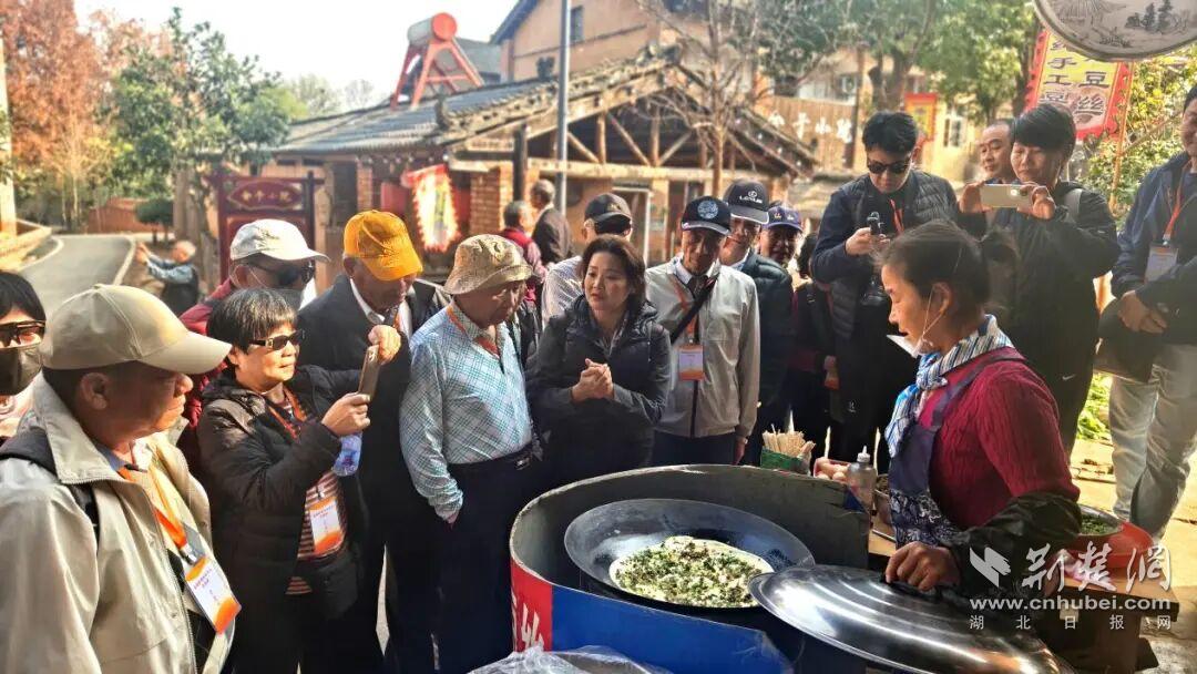 臺灣苗栗縣黃姓宗親會一行在江夏區(qū)小朱灣品嘗特色美食。通訊員供圖