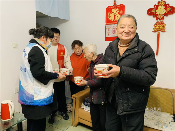 工程營(yíng)小區(qū)自治小組上門(mén)送藕湯。 通訊員供圖