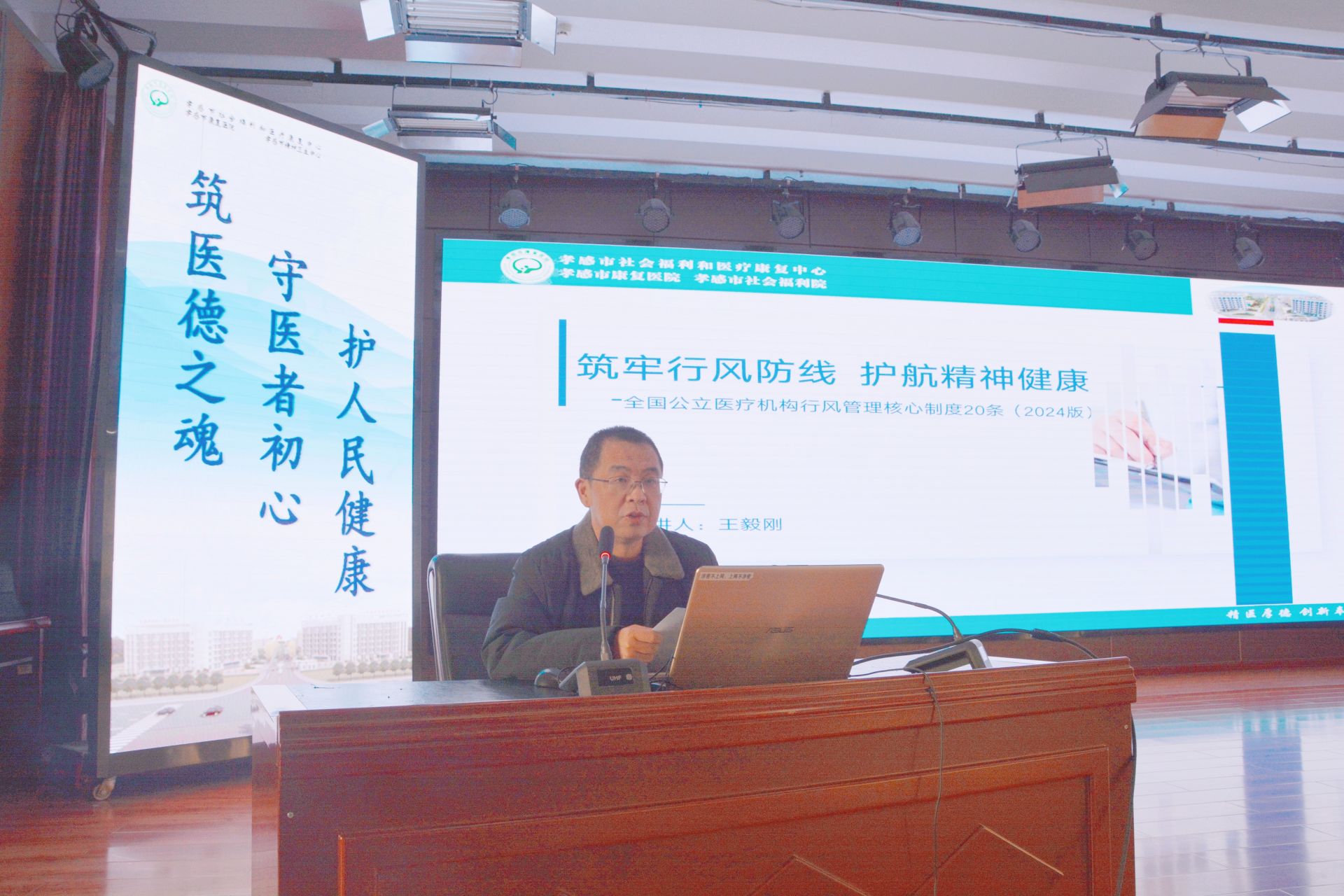 “中心”副主任王毅剛聚焦《筑牢行風防線 護航精神健康--全國公立醫(yī)療機構行風管理核心制度20條(2024版)解讀》主題展開培訓。他系統(tǒng)梳理了該核心制度的框架體系與關鍵要點,緊密結合精神衛(wèi)生服務特點,分析了行風建設在提升醫(yī)療質量、保障患者安全、優(yōu)化服務體驗中的關鍵作用。他強調,要將核心制度要求全方位融入診療服務、日常管理、患者照護等各個環(huán)節(jié),構建覆蓋全員、貫穿全流程的行風建設管理閉環(huán),為精神障礙患者提供更規(guī)范、更安全、更具人文溫度的醫(yī)療服務。