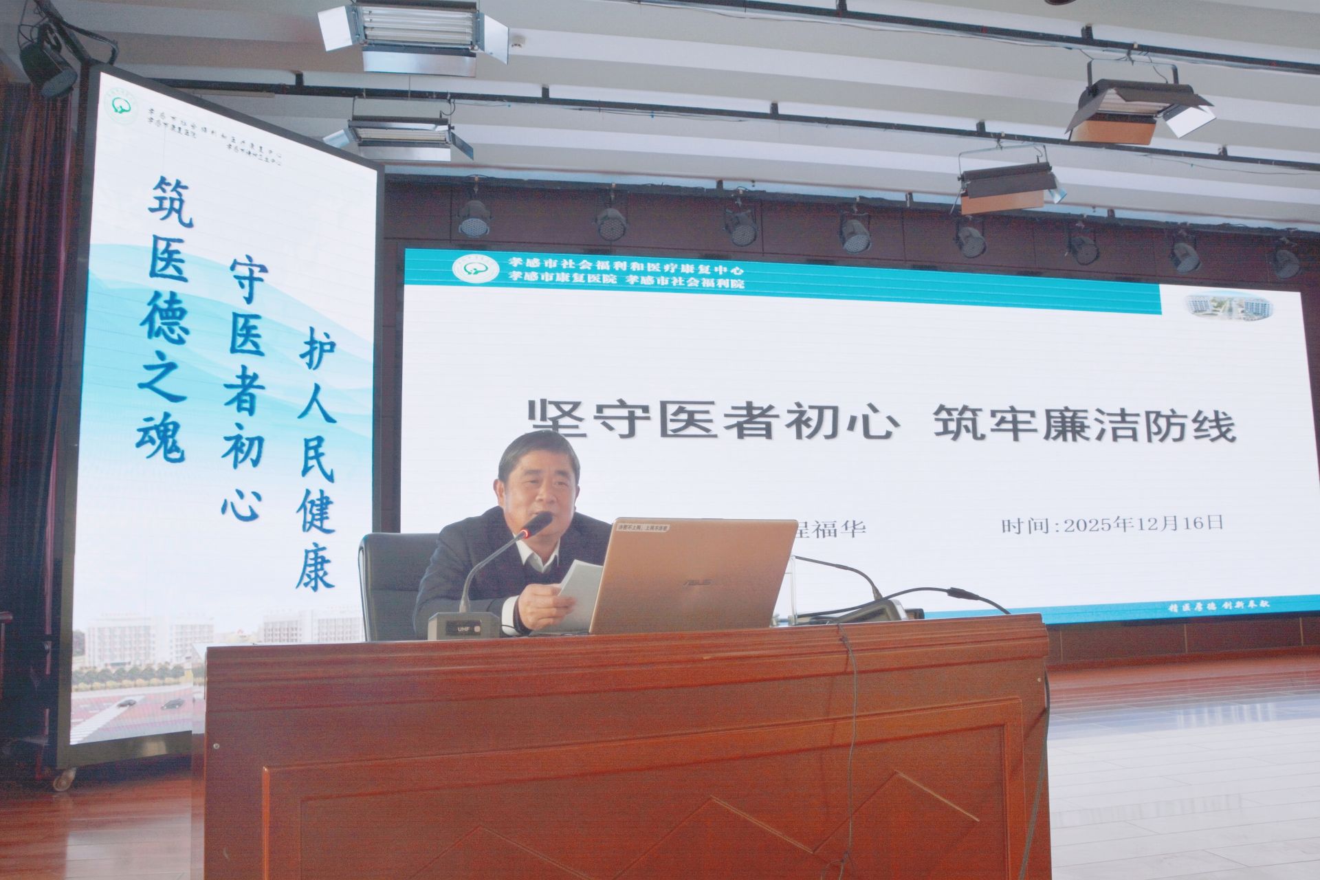 培訓會上,“中心”紀委書記程福華以《堅守醫(yī)者初心 筑牢廉潔防線》為題授課。他緊扣當前醫(yī)療衛(wèi)生領域黨風廉政建設的新形勢與新要求,通過政策解讀與案例警示,深刻闡述了廉潔行醫(yī)的重要性。他強調,全體醫(yī)務人員務必時刻繃緊廉潔自律這根弦,將“九項準則”要求內化于心、外化于行,嚴守職業(yè)底線、不越紀律紅線,始終堅守醫(yī)者仁心的純潔本色,共同營造風清氣正的醫(yī)療環(huán)境。