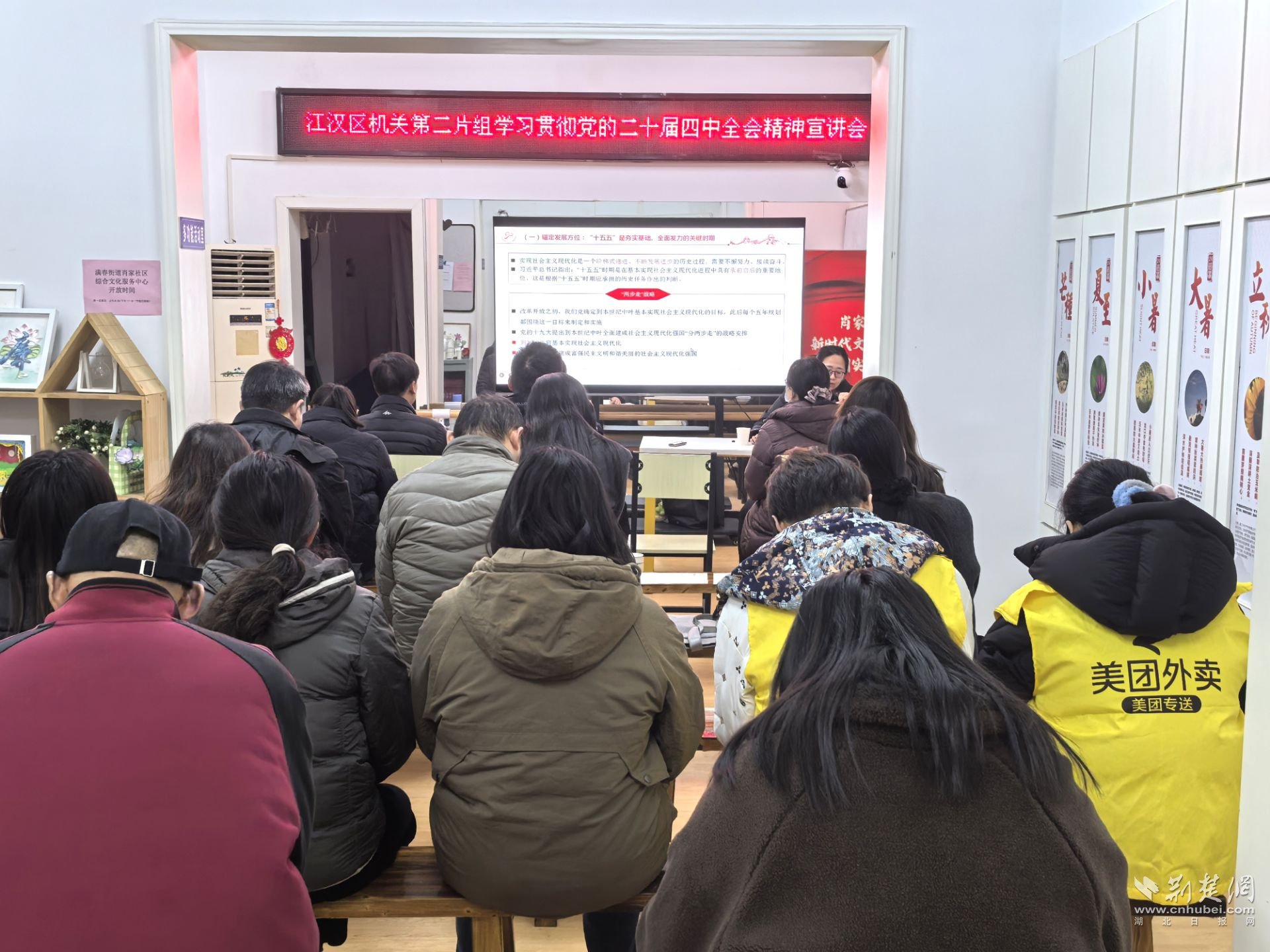 荊楚網(wǎng)(湖北日?qǐng)?bào)網(wǎng))訊(記者 何婧 通訊員 沈力)12月17日,在江漢區(qū)委直屬機(jī)關(guān)工委指導(dǎo)下,區(qū)委社會(huì)工作部機(jī)關(guān)黨支部召集區(qū)直機(jī)關(guān)黨建聯(lián)系第二片組單位,聯(lián)合滿春街道肖家社區(qū)黨委,舉辦學(xué)習(xí)貫徹黨的二十屆四中全會(huì)精神宣講會(huì)暨“基層治理 人人有責(zé)”專題研討活動(dòng)。區(qū)人大、區(qū)委組織部等9家成員單位黨員代表,以及新興領(lǐng)域黨員代表齊聚一堂,共學(xué)全會(huì)精神、共話治理實(shí)踐。