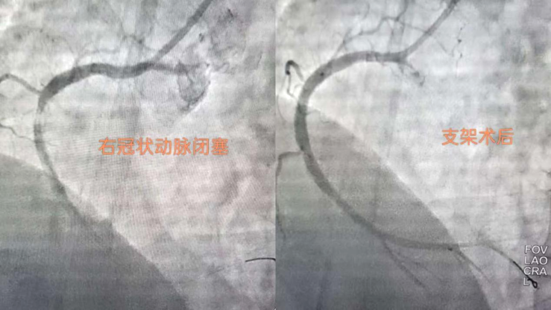 搶時間就是搶生命!06:46穿刺,06:47成功,06:49冠脈造影明確:右冠狀動脈中段完全閉塞。導絲迅速通過,支架精準植入,07:03血流恢復,手術成功結束?;颊咝赝疵黠@緩解,生命體征趨于平穩(wěn)。從入院到血管再通,不到兩小時。