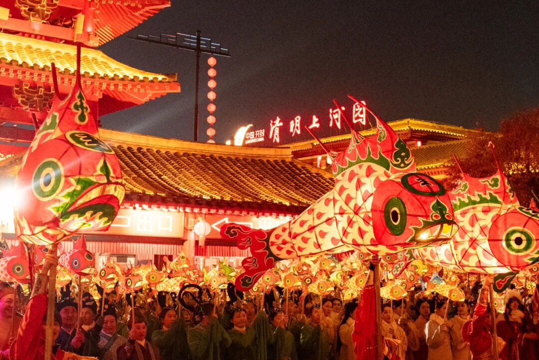 來清明上河園,舉一盞魚燈,在光影交錯(cuò)中,共賞盛世繁華,共度一夜魚龍舞的夢幻時(shí)刻!