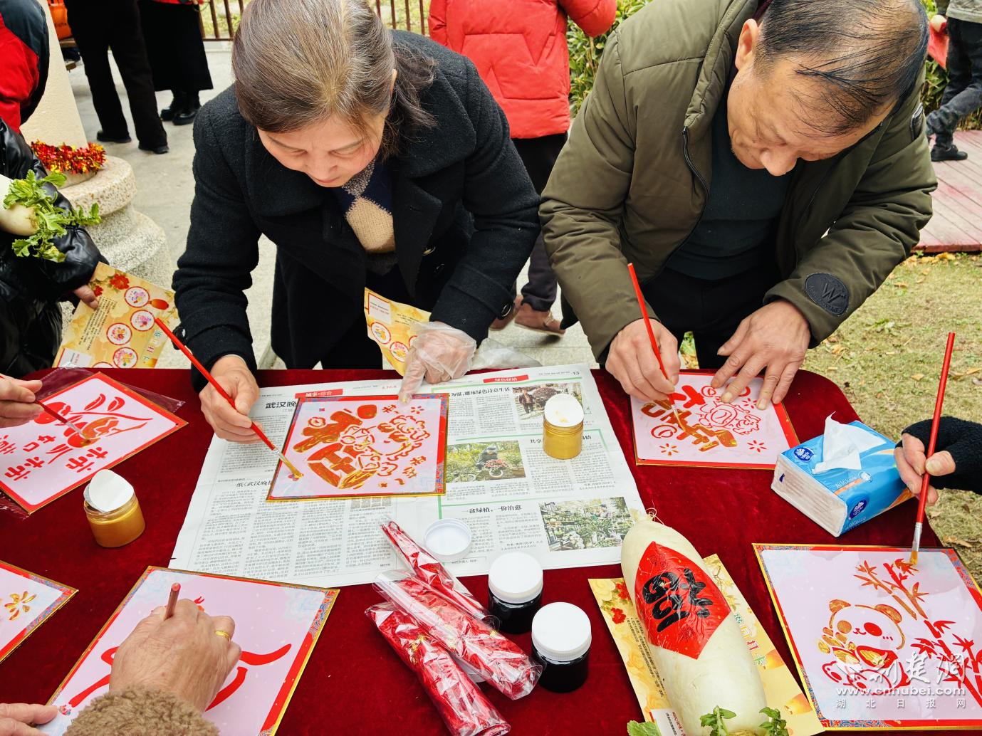 手工體驗區(qū)則充滿了濃厚的文化韻味,大家在志愿者的指導(dǎo)下,將雕刻著不同書體“?!弊峙c馬年吉祥紋樣的模板,小心翼翼拓印在紅色宣紙上。當(dāng)一幅幅帶著墨香的福字躍然紙上,不僅定格了傳統(tǒng)技藝的獨特魅力,更承載著大家對新年福氣盈門的美好期盼?!拔彝亓艘粋€‘福’字,打算帶回家貼在門上,希望新的一年全家都福氣滿滿!”一位年輕媽媽舉著自己的作品,開心地分享道。