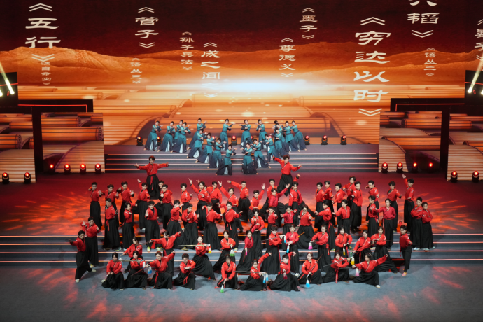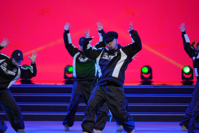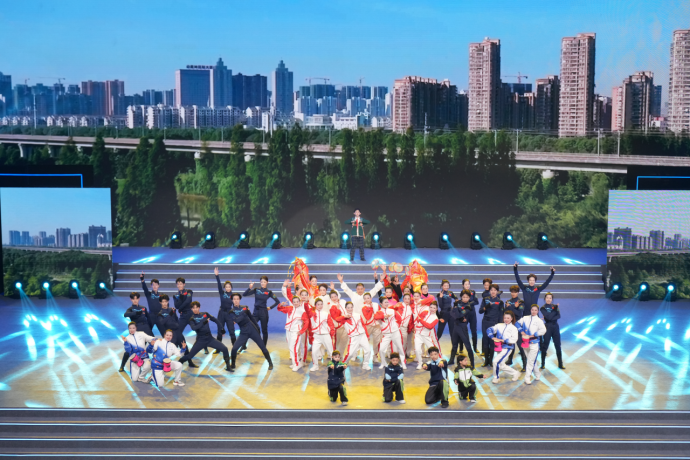 19時55分,開幕式文體展演正式拉開帷幕,現(xiàn)場約3000名觀眾共同欣賞了這場兼具孝感地域特色與高水準(zhǔn)藝術(shù)呈現(xiàn)的視聽盛宴。展演活動分為《感悟·澴川律動》《感動·家國深情》《感恩·建功支點》三個篇章,涵蓋街舞、武術(shù)、歌舞等多種形式,既展現(xiàn)本地文化底蘊,也傳遞出全民健身的活力與熱情。