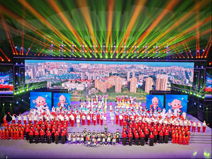 《感恩·建功支點》篇章結(jié)合第十七屆省運會宣傳歌曲《追夢有光》,展現(xiàn)荊楚兒女奮進(jìn)新征程的拼搏精神,將全場氣氛推向高潮。