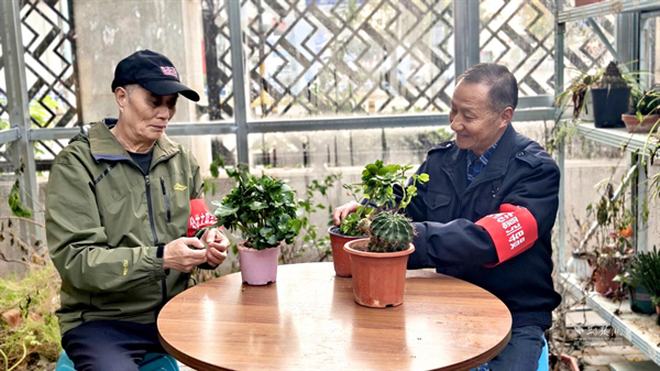 作為“春天鄰里服務(wù)隊”發(fā)起人之一和支部老黨員,周榮良是看著這些變化一點點發(fā)生的。最早動員大家時,他領(lǐng)著幾位老黨員,挨家挨戶敲門,話也說得實實在在:“咱們一起試試,先清出一小塊地也行?!庇腥丝矗腥藛?,可更多的鄰居還是打開了家門——退休的居民搬出了家里不用的花盆;做水電工的師傅答應(yīng)幫忙安裝澆水的水管;連剛上學(xué)的小孩子,也捧來了自己養(yǎng)的小多肉。