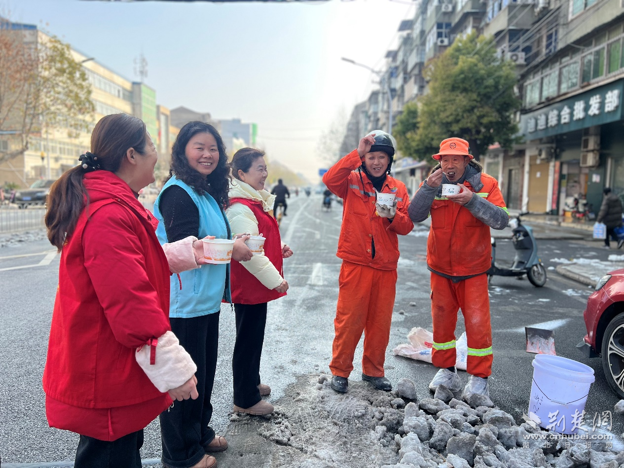 荊楚網(wǎng)(湖北日報網(wǎng))訊(通訊員 吳悠琪)1月23日上午,武漢經(jīng)開區(qū)紗帽街道薇湖路社區(qū)工會愛心驛站開展“品一碗暖心臘八粥,情暖環(huán)衛(wèi)工”冬季送溫暖活動。工作人員提前備好食材,經(jīng)過數(shù)小時慢火熬煮,將軟糯香甜、營養(yǎng)豐富的臘八粥,逐一送到轄區(qū)各路段的環(huán)衛(wèi)工人手中,為寒冬里的一線勞動者送上社區(qū)與工會熱氣騰騰的關(guān)懷。