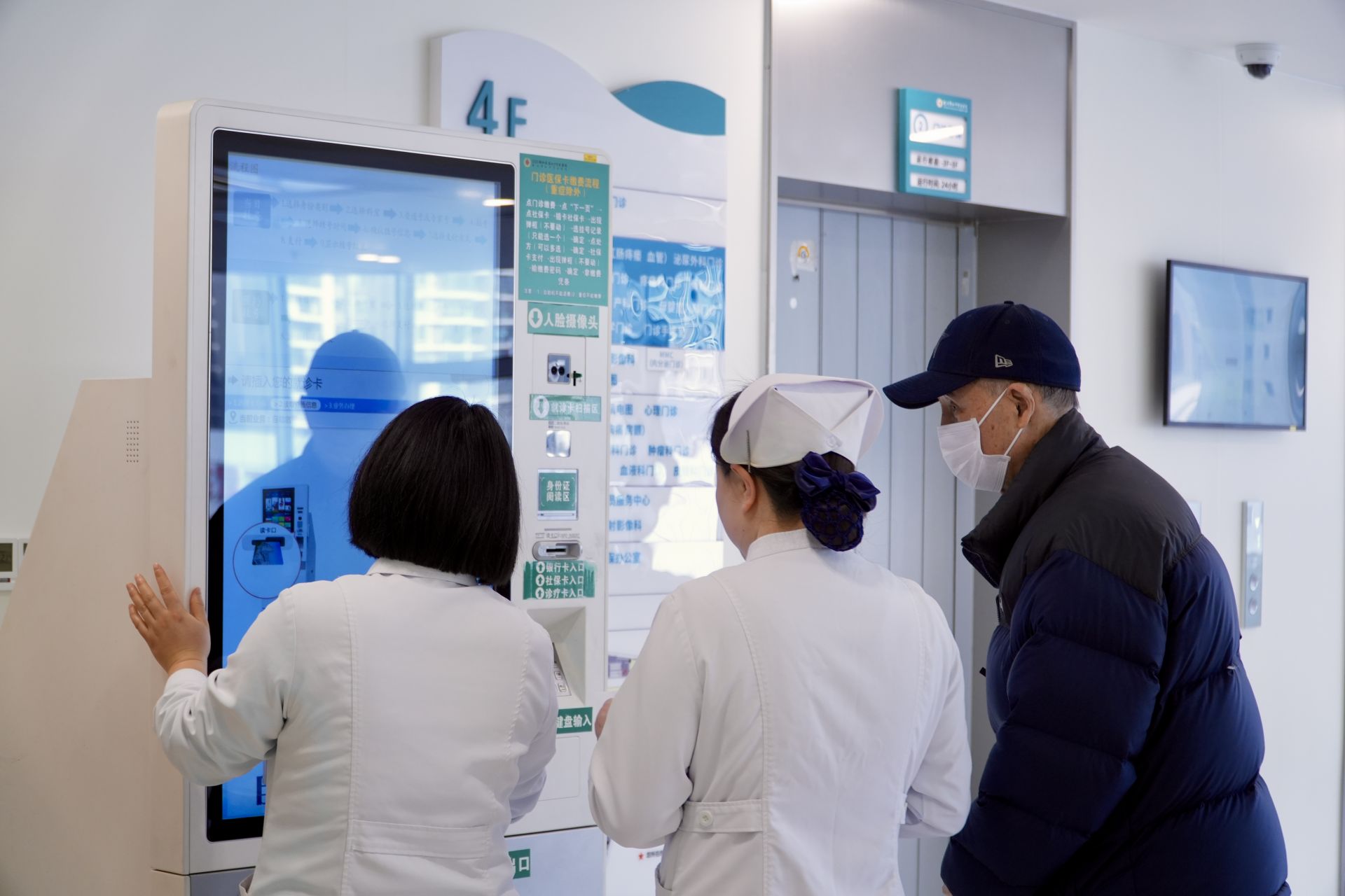 進入門診大廳,導(dǎo)診臺、自助掛號機分布在顯眼位置。記者注意到,多名醫(yī)護人員和志愿者在大廳內(nèi)來回巡查,看到行動不便的老人,便主動上前詢問,幫忙完成掛號等流程,就診秩序平穩(wěn)有序。
