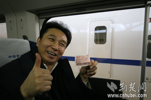 荊楚網(wǎng)消息(記者姚啟慧)26日上午9時(shí),武廣高鐵發(fā)出首趟列車,不少武漢游客專門前來體驗(yàn),在3號車廂,記者遇到了武漢著名“笑星”田克兢。他坦言,乘高鐵體驗(yàn)既驚又喜,今后要把這次經(jīng)歷融入自己作品中。