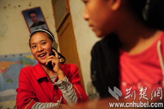 圖為:王玉蘭給老師曹建強(qiáng)打電話。
